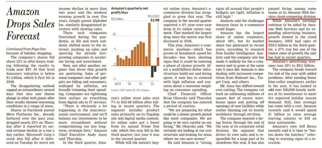 Amazon : la divisione del cloud computing cresce meno che nel passato