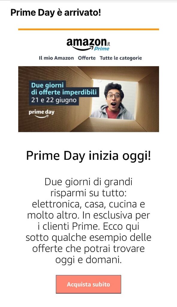 Wall Street Journal 23 giugno 2021 : “Prime Day will generate roughly $12.18 billion in sales in the U.S., a 17% increase from last year’s Prime Day, eMarketer predicts”