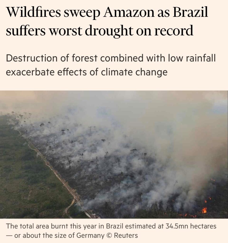 sono dovuti al circolo vizioso della deforestazione che, aggravata dalla siccità, cambia il clima. Il 60% del Brasile è inquinato dal fumo che colpisce anche i paesi vicini. FT e Le Monde