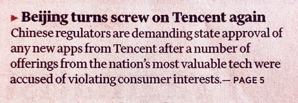 Sembra che, in questo momento, ci sia un parallelo con le società cinesi , colpite da misure antitrust (vedi sotto, fonte FT).