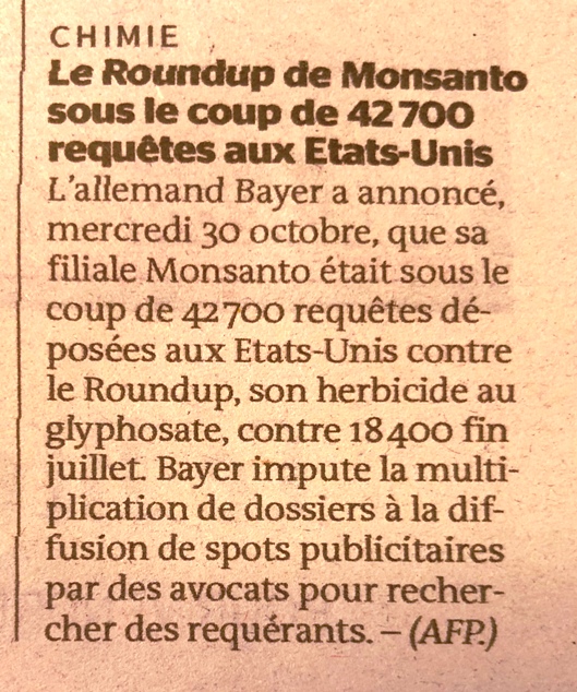 Bayer- Monsanto : le cause per il glifosato salgono a 42’700 negli USA