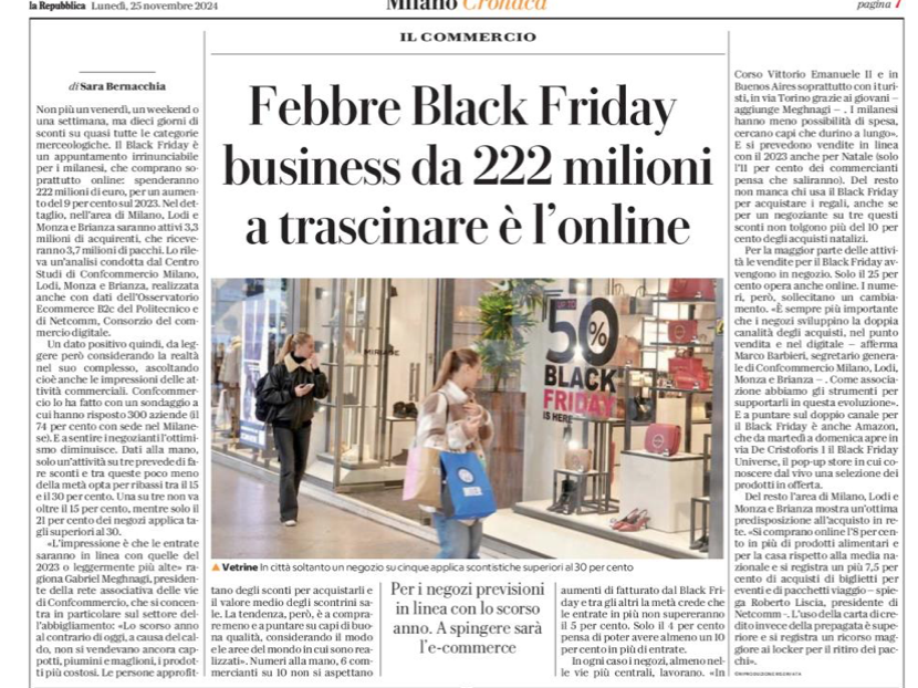 Black Friday : Usa , la crisi del non food. A Milano cresce l’e-commerce (+9%)