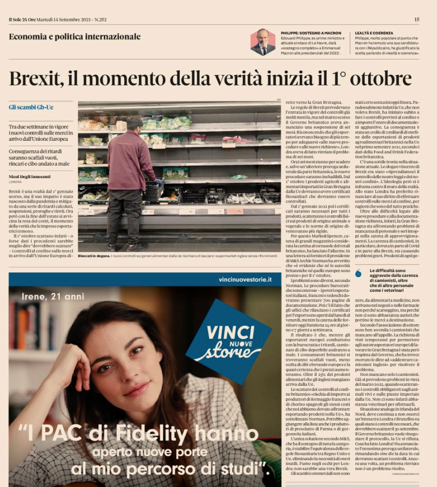 Il Sole 24 ore 14 settembre 2021. Gran Bretagna verso il caos?