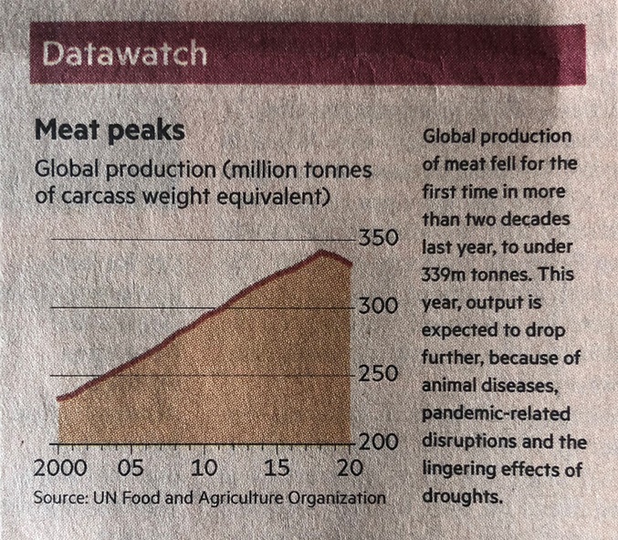 Quest’anno dovrebbe scendere ulteriormente a causa delle malattie degli animali, dei problemi legati al coronavirus e agli effetti della siccità causata dal cambiamento climatico. Financial Times 13 Agosto 2020