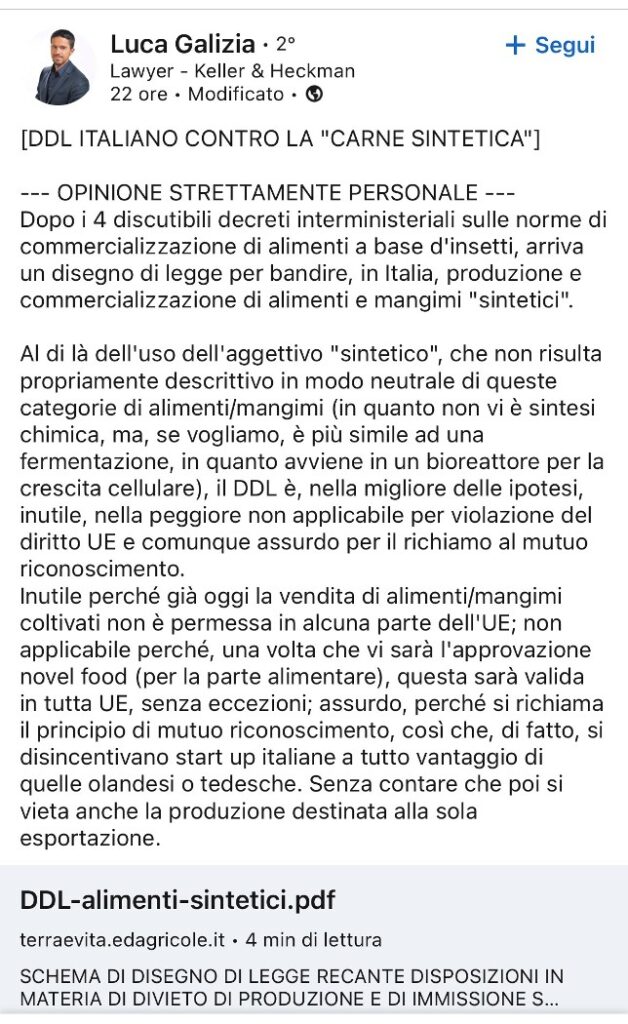 Oppure : “Sulla carne sintetica c’è molto rumore per nulla, come al solito”.