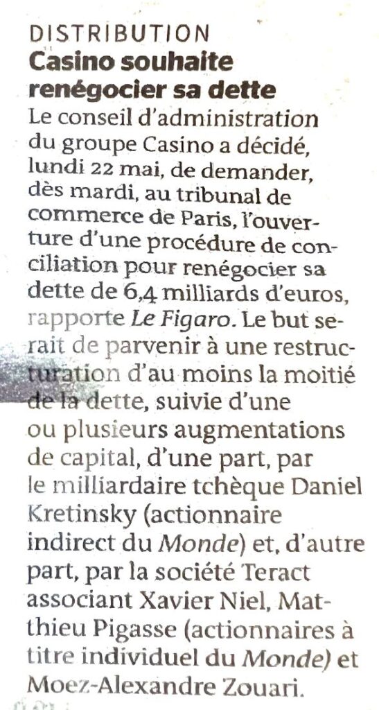 Poi ci saranno aumenti di capitale per far entrare nuovi azionisti. Le Monde 24 maggio 2023 (fonte iniziale : Le Figaro).