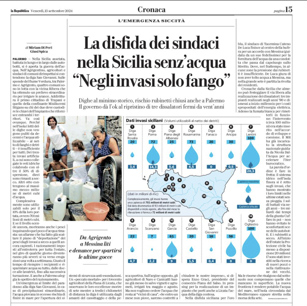 E, in fondo : la guerra dell’acqua – che non c’è – in Sicilia dove gli interventi del governo sono tardivi.