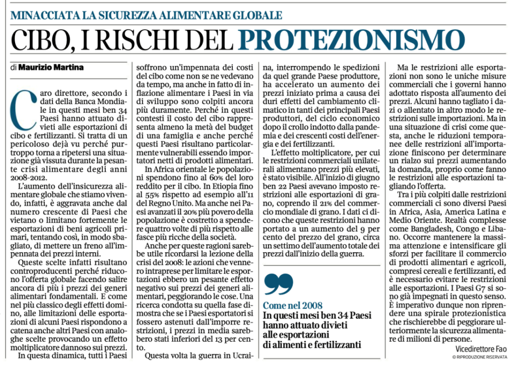 A giugno 2020 scrivevo : ” gli scambi di merci sono crollati in questi mesie rischiano di scendere ancora di più a causa di un novello protezionismo… secondo l’agenzia Cnuced dell’ONU, il commercio contribuisce per il 30% del PIL nei paesi in via di sviluppo rispetto al 18% nei paesi sviluppati”. Ad oggi 34 paesi hanno chiuso le loro frontiere. Erano 25 pochi mesi fa.