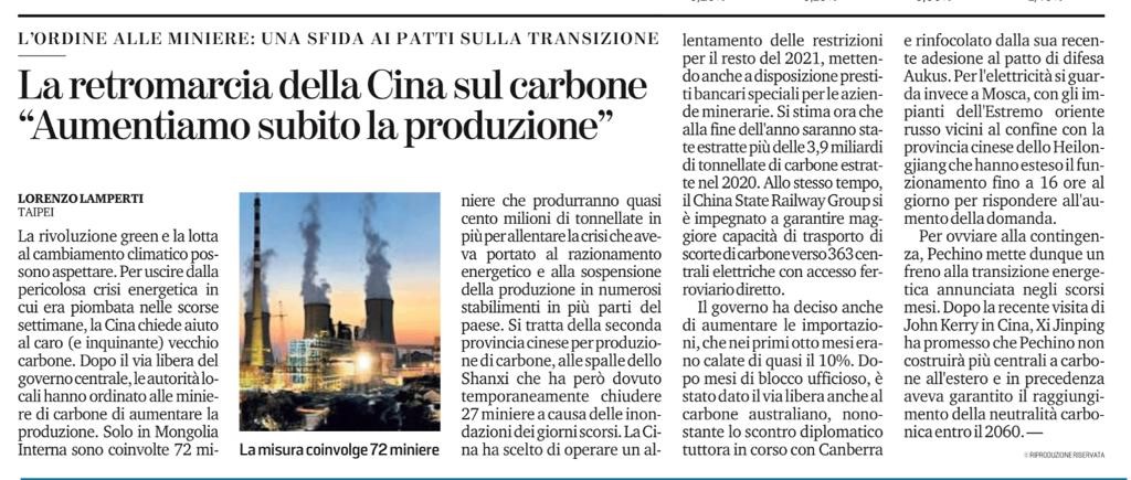 Leggi anche In Cina transizione climatica a rischio già da maggio 2021