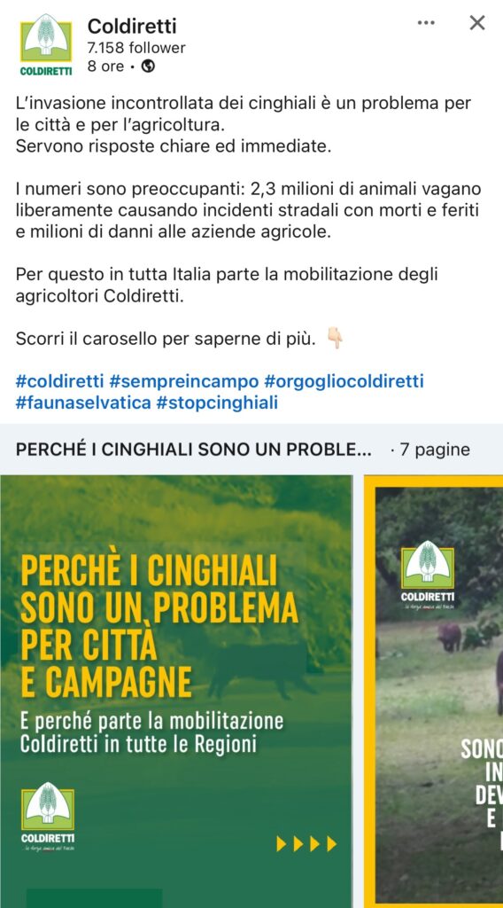 Sui cinghiali la storia è lunga e tanti hanno dormito. Coldiretti, come per il clima, la scopre e si muove.Un pò tanto tardi.