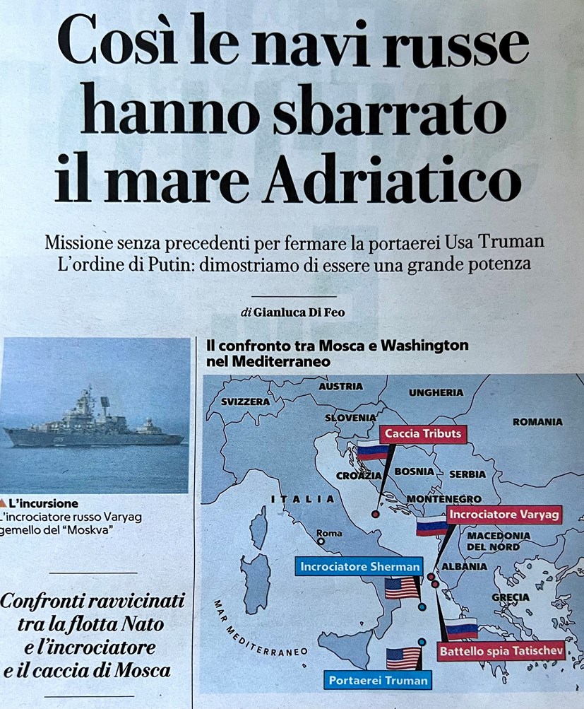 “Il Mediterraneo di fatto è il secondo fronte del conflitto ucraino” Repubblica 15 agosto 2022. Per avere un quadro completo leggi : Perchè non bisogna arrendersi davanti all’imperialismo russo del grano e cedere sull’Ucraina