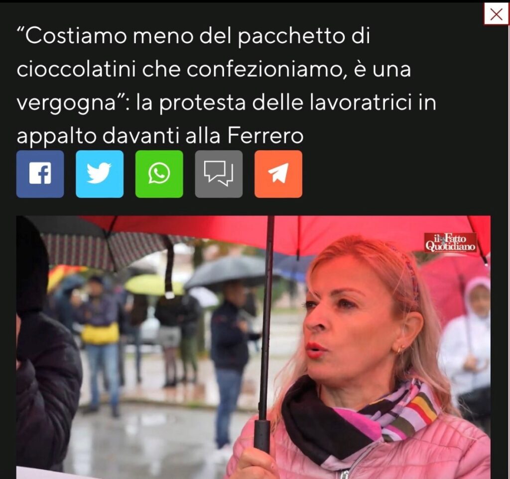 “Costiamo meno del pacchetto di cioccolatini che confezioniamo, è una vergogna”: la protesta delle lavoratrici in appalto davanti alla Ferrero