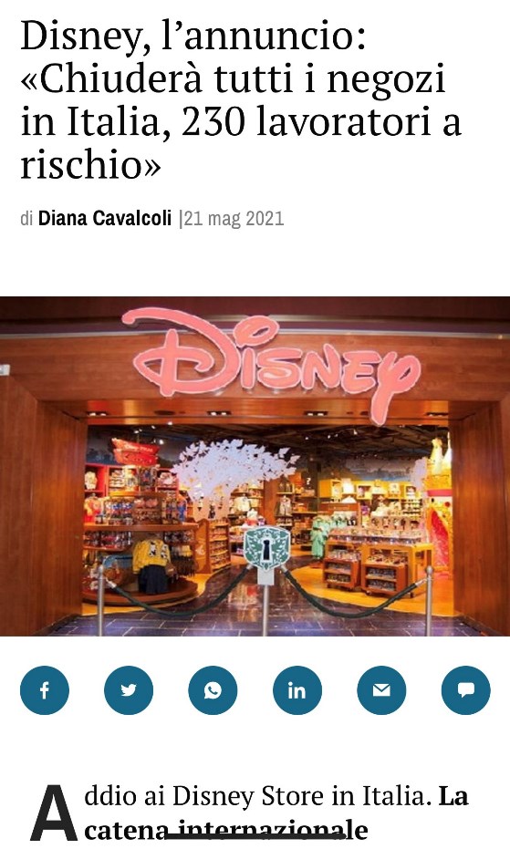 A rischio 230 posti di lavoro. Corriere della Sera 21 maggio 2021
