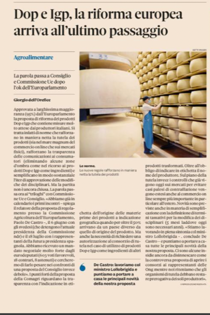 Due cose importanti : l’indicazione di origine delle materie prime, quando per oltre il 50% arrivano da un paese diverso da quello di origine del produttore e l’obbligatorietà in etichetta del nome del produttore. Il Sole 24 ore del 3 giugno 2023