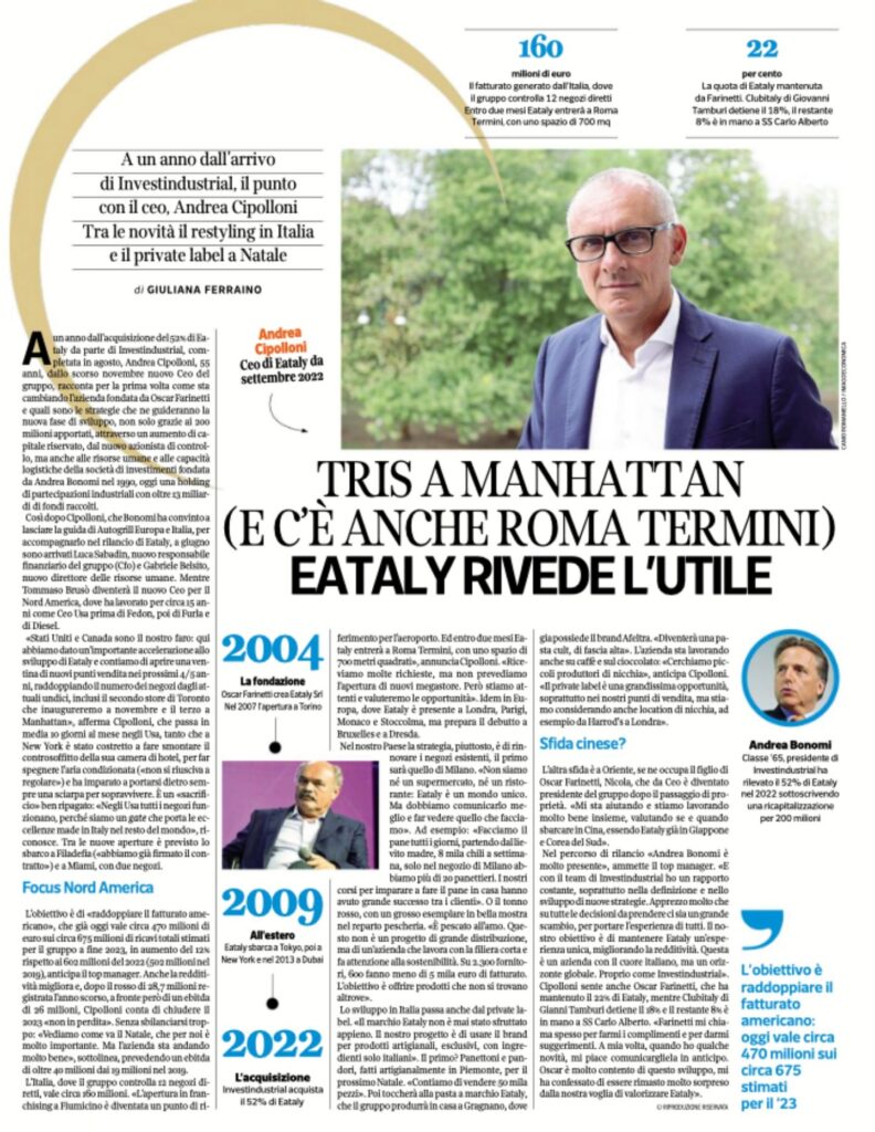 Eataly punta a un 2023 “non in perdita”