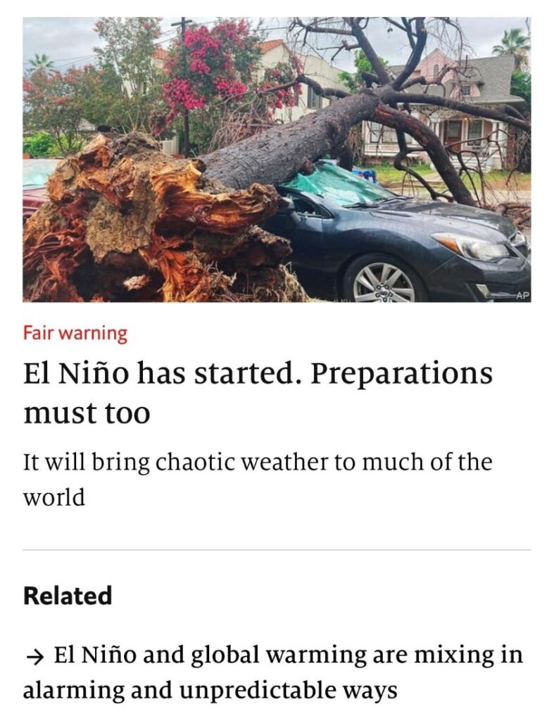El Nino è arrivato (The Economist 26 agosto) : cambiamento climatico e fenomeni meteorologici si incrociano. Probabile rialzo dei prezzi delle materie prime alimentari