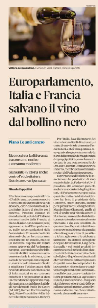 Il Sole 24 ore del 17 febbraio 2022. Luigi Scordamaglia (Filiera Italia) contro “quelle multinazionali che vorrebbero sostituire i prodotti di qualità con alimenti prodotti in laboratorio”, un allusione a Nestlè?