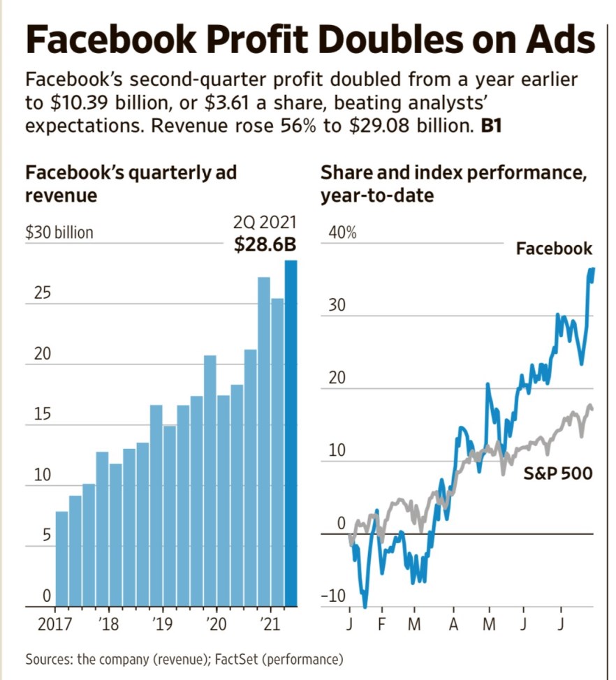 Il Wall Street Journal del 29 luglio 2021 attribuisce questa crescita alla pubblicità.