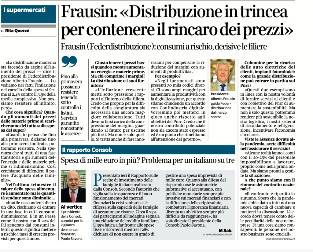 Federdistribuzione : inflazione nella GDO a + 2,4%