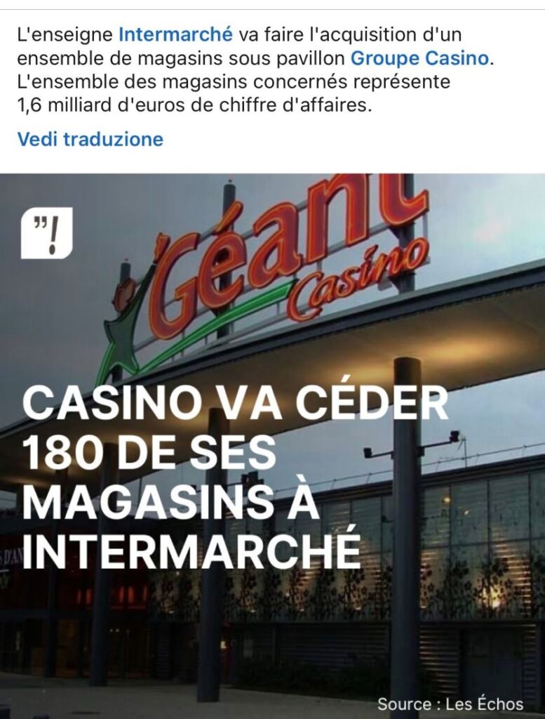 Francia : Intermarché dovrebbe riprendere la gestione di 180 pdv Casino