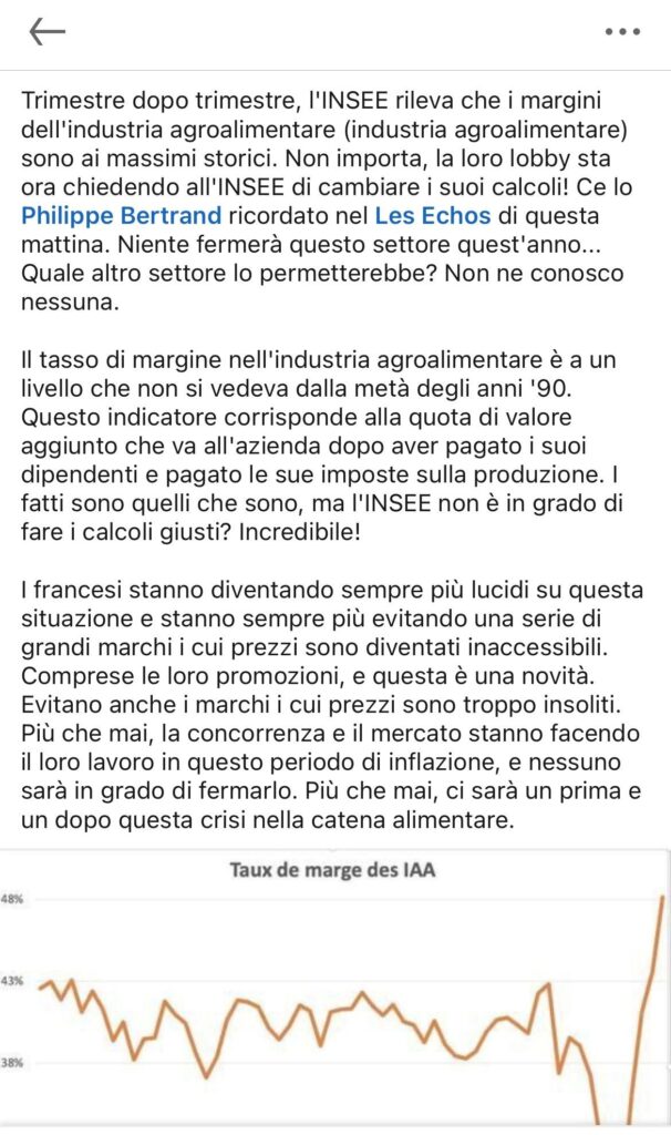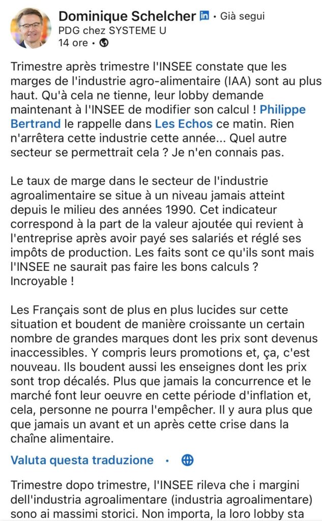 IAA : Industria agroalimentare. INSEE : equivalente dell’ISTAT. Dominique Schelcher è ad di Système U.