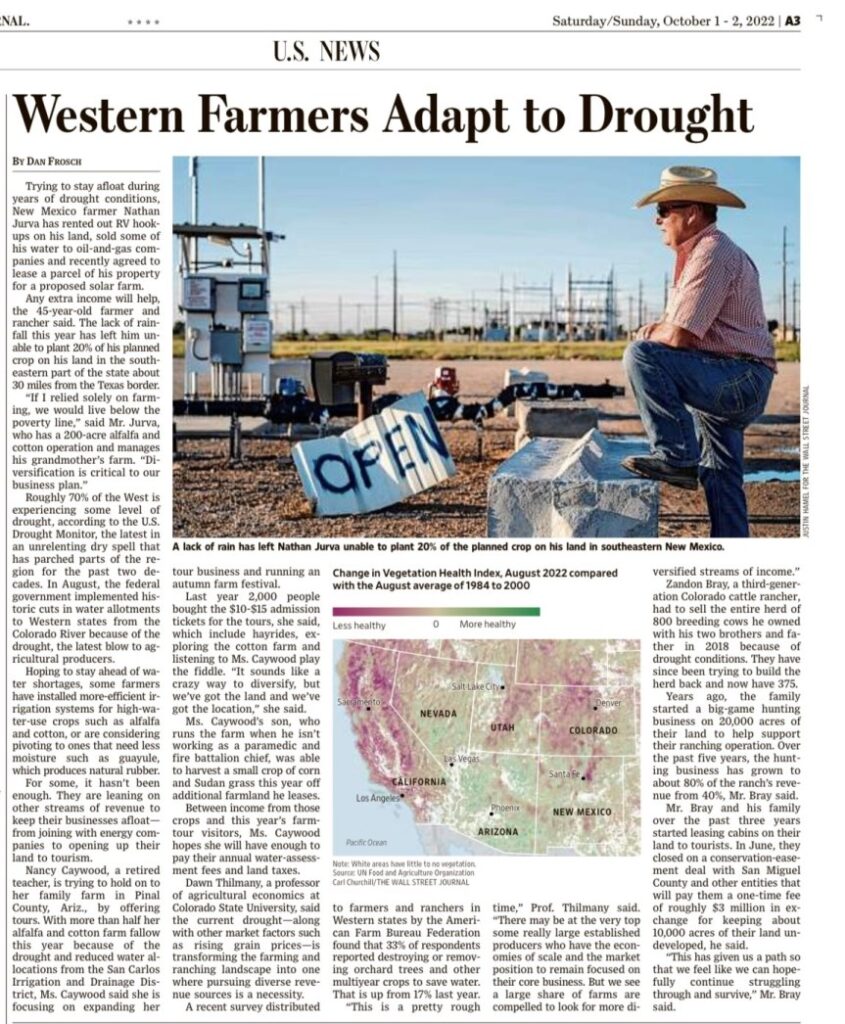 Ad esempio affittano i loro terreni per parchi eolici o ad installazioni turistiche. Wall Street Journal 1 e 2 ottobre 2022. Sotto vedete le regioni più colpite : California, Utah, New Mexico, Arizona, Colorado e Nevada.