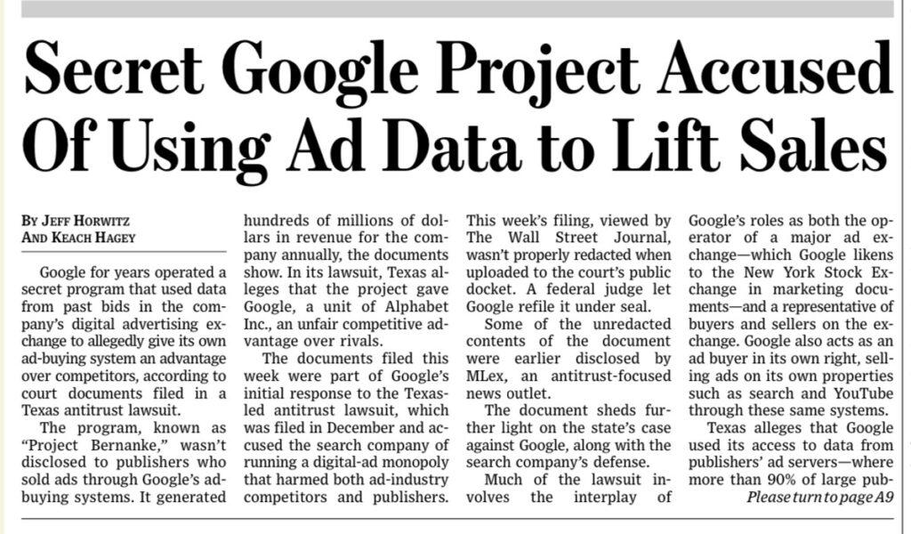 Si chiamerebbe “progetto Bernanke” e le accuse vengono dall’antitrust dello Stato del Texas. Wall Street Journal 12 aprile 2021