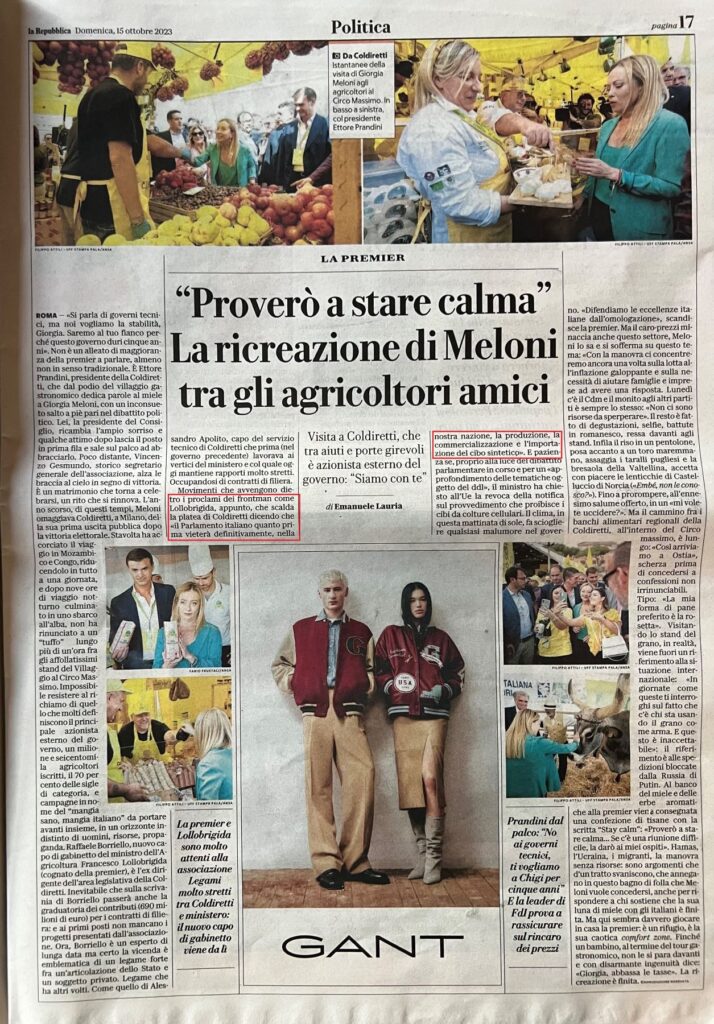 Oppure bisognerebbe pensare di più all’inflazione? Le dichiarazioni di Francesco Lollobrigida al Circo Massimo sembrano far intuire che si propenda per la prima. Repubblica 15 ottobre 2023.