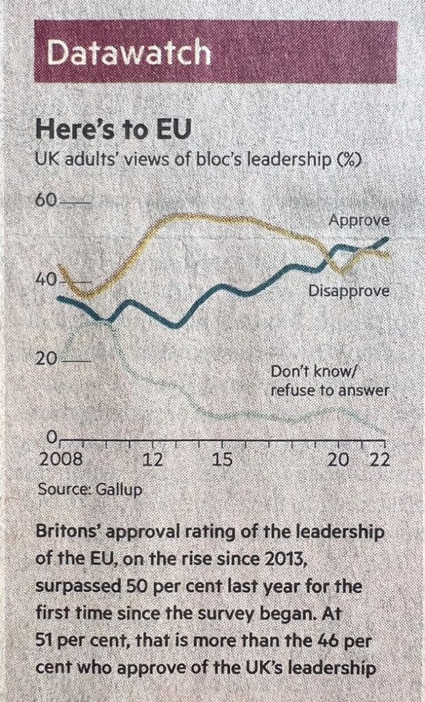 Gran Bretagna: inflazione alimentare al 18% e consenso dell’operato UE ai massimi
