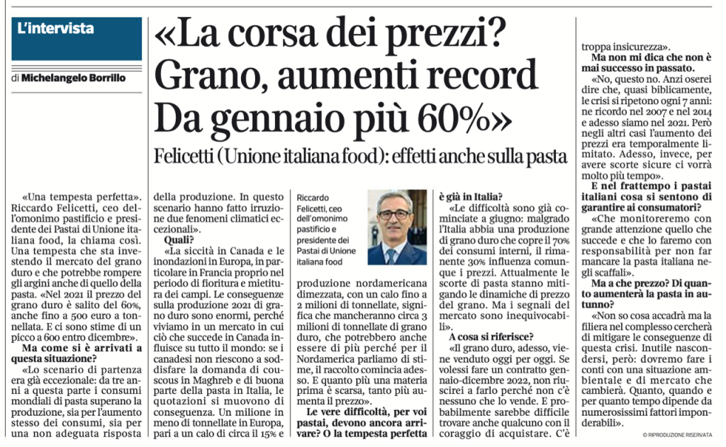 Corriere 2 settembre 2021. Sul grano puoi leggere l’articolo precedente.