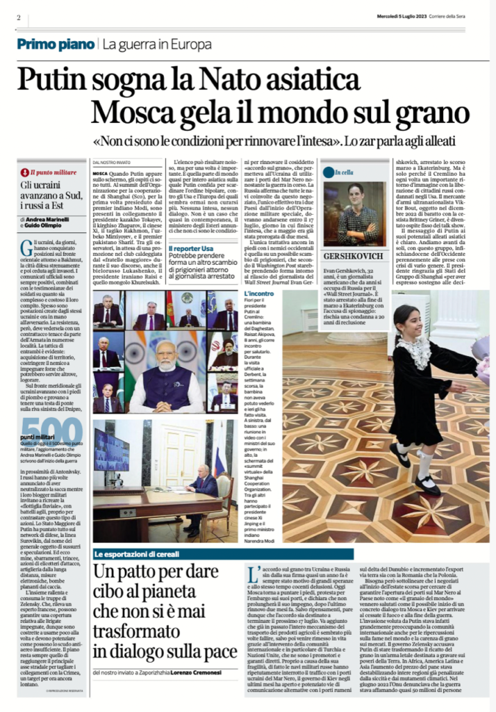 sul transito dal Mar Nero. Corriere dell Sera 5 luglio 2023