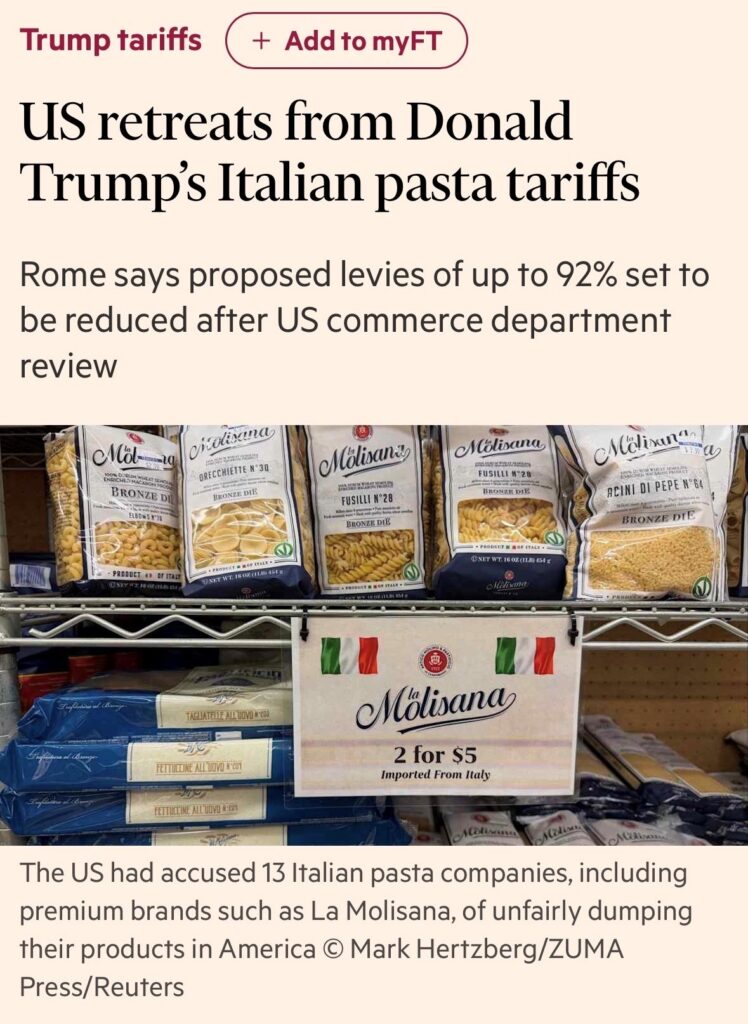 L’iter ha avuto inizio dopo che alcune aziende statunitensi avevano accusato i pastifici italiani di vendite a prezzi ritenuti troppo bassi, aprendo una procedura antidumping che prevedeva dazi fino al 91,74% oltre alla tariffa Ue standard del 15%. La prospettiva di oneri così pesanti aveva acceso un acceso dibattito politico ed economico, con timori sul possibile impatto sulle esportazioni italiane negli Stati Uniti, uno dei mercati più importanti per il settore.