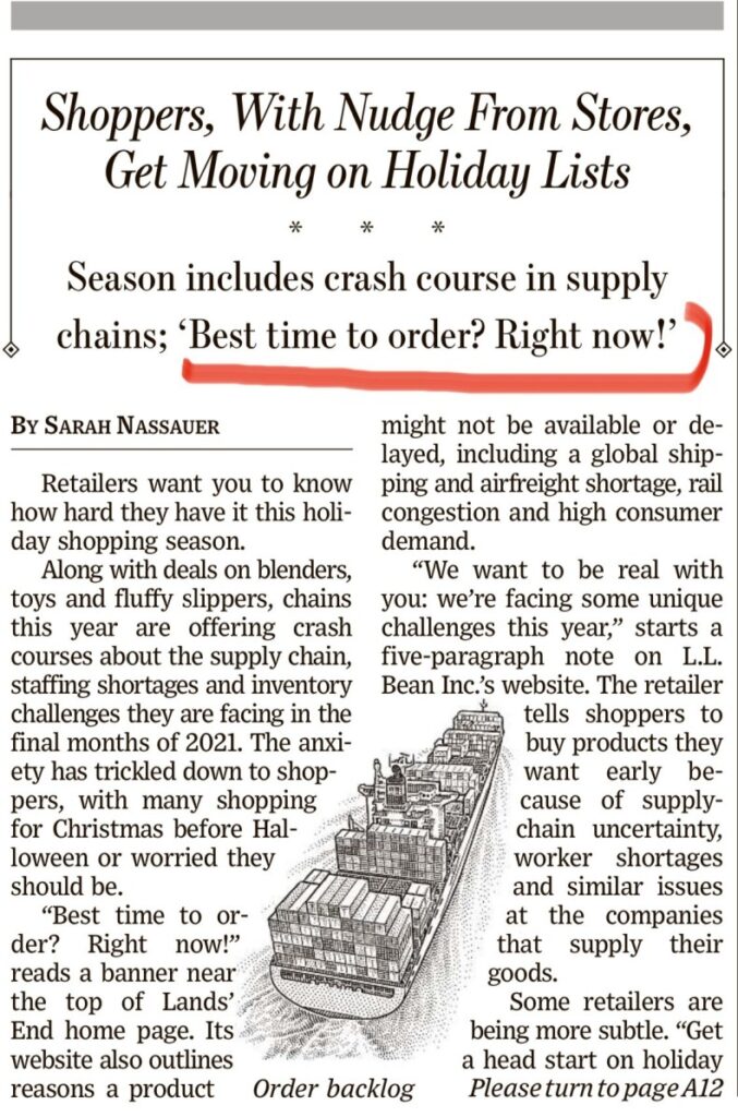 I distributori USA ai clienti : “ordinate la merce ora se volete che vi arrivi in tempo per Natale”