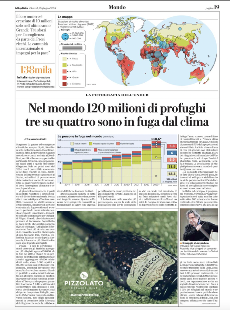 su 120 milioni di profughi. Repubblica 13 giugno 2024