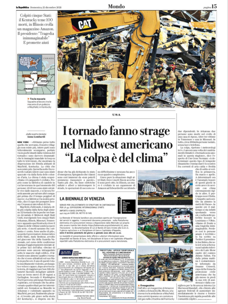 I tornado fanno strage nel Midwest. “E’ colpa del clima”