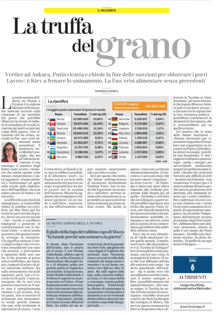Nonostante l’incontro in Turchia . La Stampa 9 giugno 2022