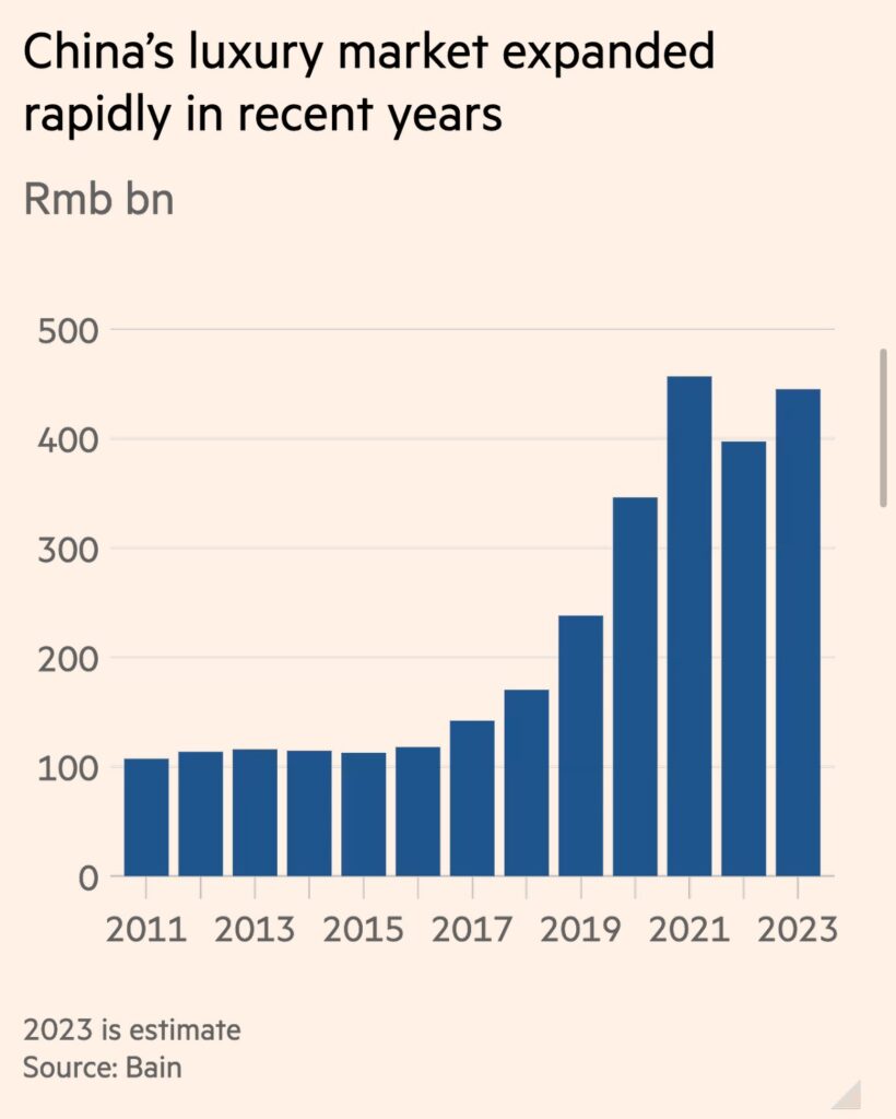 Il mercato interno del lusso cinese è raddoppiato tra il 2019 e il 2021