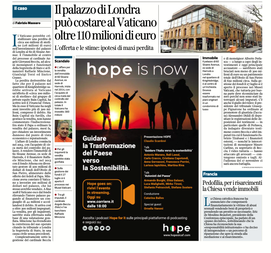 Il palazzo venduto al Papa da Raffaele Mincione, socio di Conad, rischia di costare più di 110 milioni al Vaticano