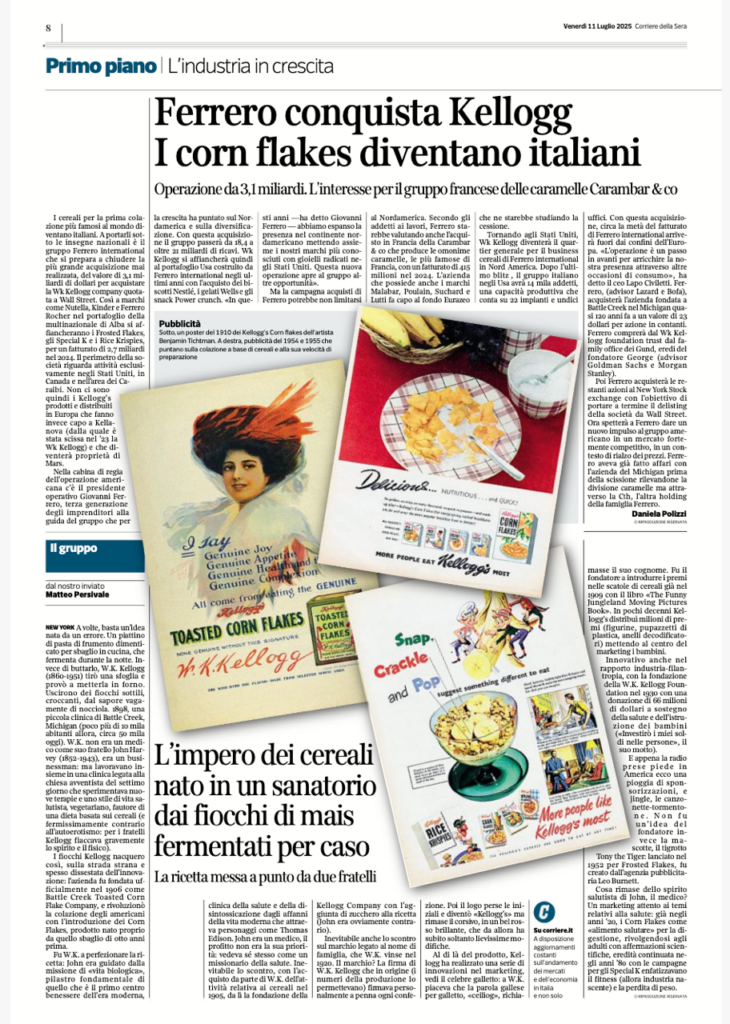 La storia dei corn flakes è interessante e si incrocia con i metodi utilizzati poi da Ferrero : i premi abbinati ai prodotti, già agli inizi del ‘900, che ricordano le sorprese degli ovetti Kinder.