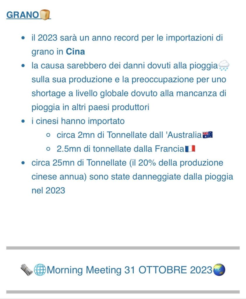 Inglobando 31 ottobre 2023 L’estremizzazione del clima causa problemi di approvigionamento e di perdita di raccolti agricoli