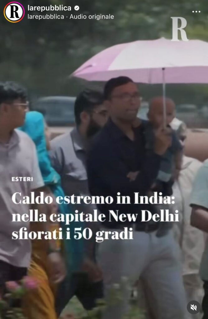 Repubblica 30 maggio 2024. Il Financial Times del 31 maggio segnala che manca l’acqua e che le autorità accusano lo stato vicino (Haryana) di “rubargliela”. Con il cambiamento climatico queste ondate di calore sono diventate “normali”. Ciò ha particolarmente colpito la coltivazione dello zucchero lo scorso autunno.