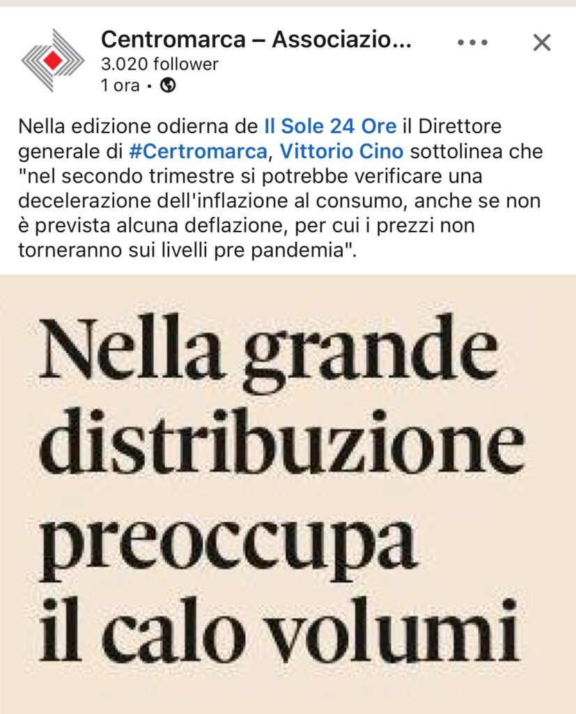 Sotto un post di Centromarca del 3 maggio 2023