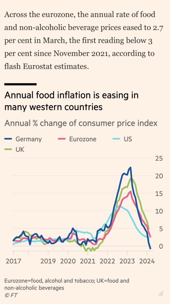 Inflazione in Eurozona sotto al 3% a marzo
