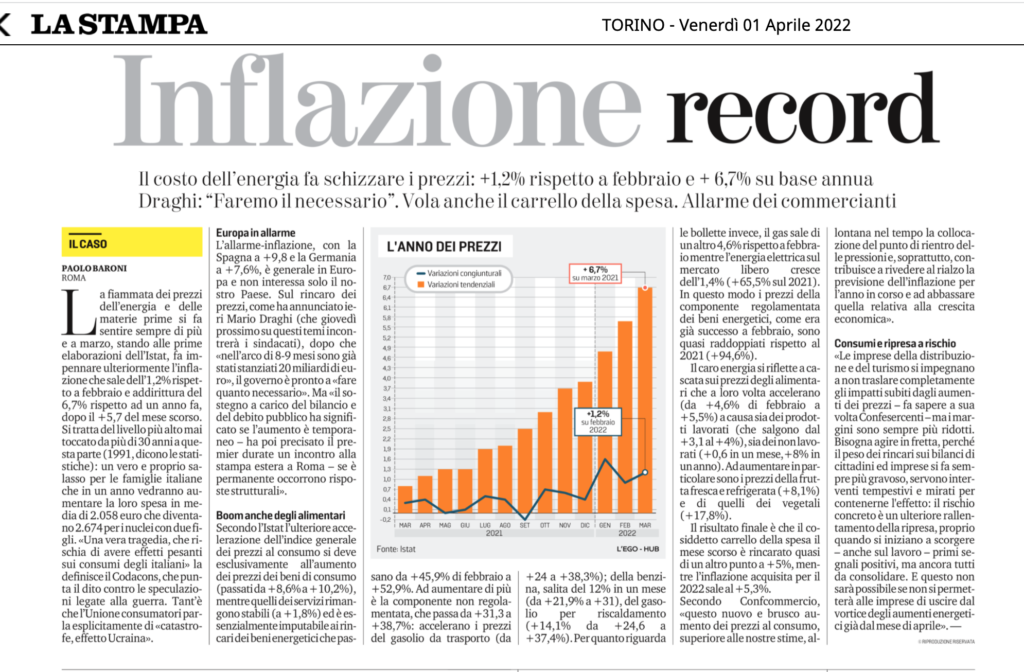 La Stampa e il Wall Street Journal 1° aprile 2022