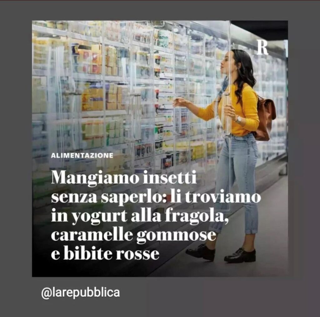 Dalla fine di dicembre 2023, anche in Italia sono in commercio di prodotti alimentari che contengono quattro insetti : larva gialla, locusta migratoria, grillo domestico e verme della farina minore. I prodotti possono contenere insetti congelati, essiccati o in polvere come già avviene negli altri paesi dell’UE. I quattro decreti autorizzativi – firmati dal Ministro dell’Agricoltura Francesco Lollobrigida, dal Ministero delle Imprese e del made in Italy e dal Ministero della Salute – discendono da altrettanti regolamenti di esecuzione vincolanti per gli Stati Membri. Il Fatto Alimentare13 gennaio 2024. In sostanza: tanto rumore per nulla, come sulla carne coltivata (in questo caso, rispetto agli insetti, è stata danneggiato tutto il comparto della ricerca a causa di una decisione ideologica).