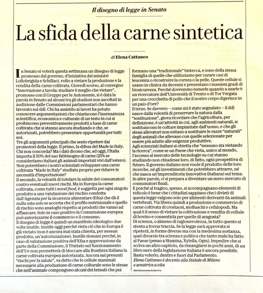 Sull’argomento puoi leggere qui. Per una volta sono d’accordo con la senatrice Elena Cattaneo che ha denunciato questa situazione su Repubblica del 18 luglio nel quale parla di disegno di legge che sarebbe un “manifesto ideologico” e – sempre riferendosi a questo disegno – di “al tragico, spesso, si accompagnano elementi di ridicolo”.