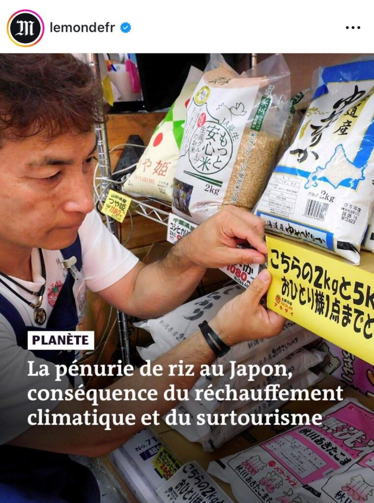 La carenza di riso in Giappone, conseguenza del riscaldamento globale e dell’eccessivo turismo