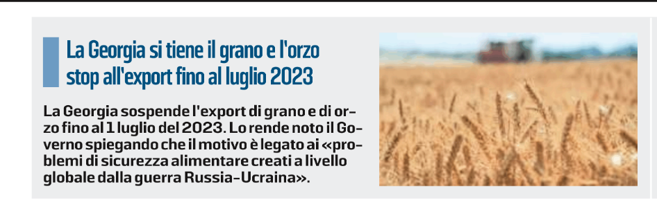 La Georgia blocca l’export di grano e orzo