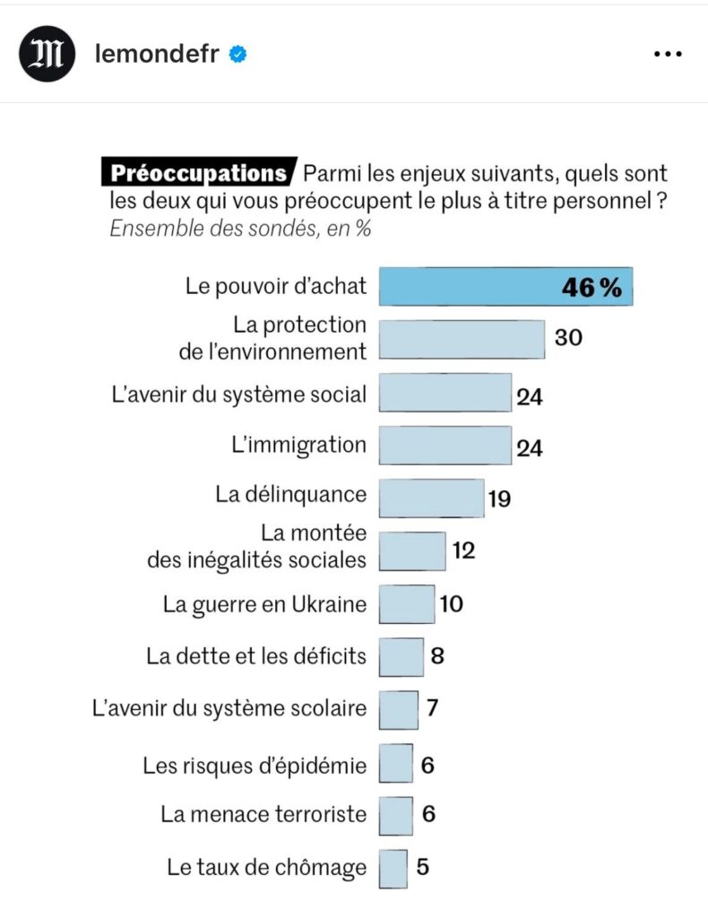 La perdita di potere d’acquisto, con l’inflazione preoccupa il 46% dei francesi