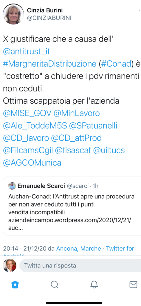 Roma 21 dicembre 2020 – L’Antitrust apre una procedura contro la società Bdc per inottemperanza rispetto alla cessione di 22 punti vendita ex Auchan. L’iter dovrà concludersi entro giugno 2021.